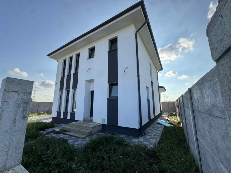 Casa intabulata si se preda cu exteriorul finisat , cu interiorul semifinisat (geamuri termopane , instalatii de incalzire in pardoseala , instalatie electrica si de apa , sapa turnata , interior gletuit , rezervoare wc incastrate) si curtea imprejmuita cu gard din beton , trotuar perimetral pavat.